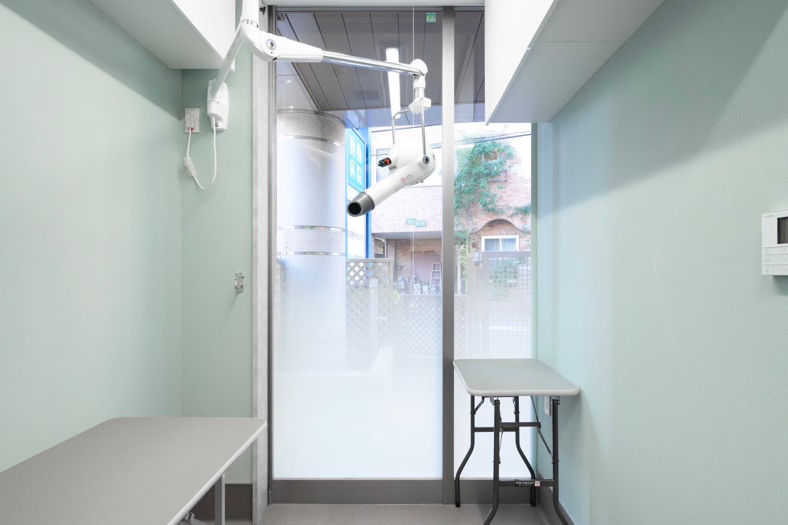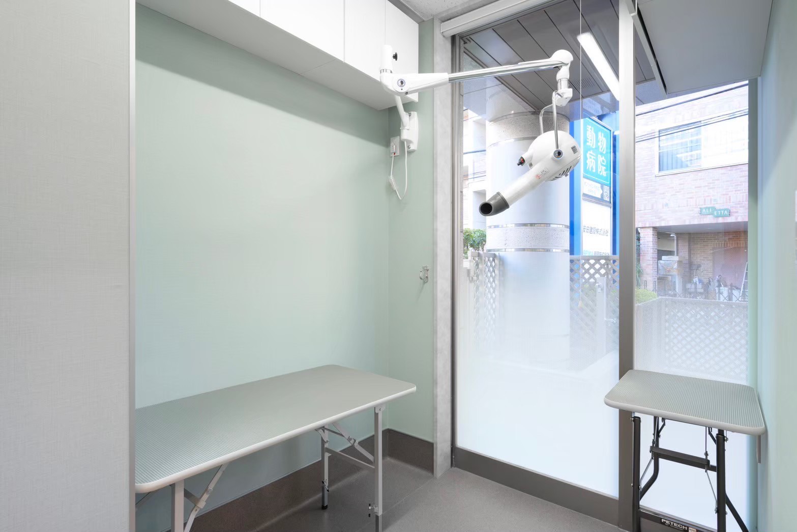 限られた空間の中で、診察・処置・入院・トリミングなどの各スペースを効率的に配置。