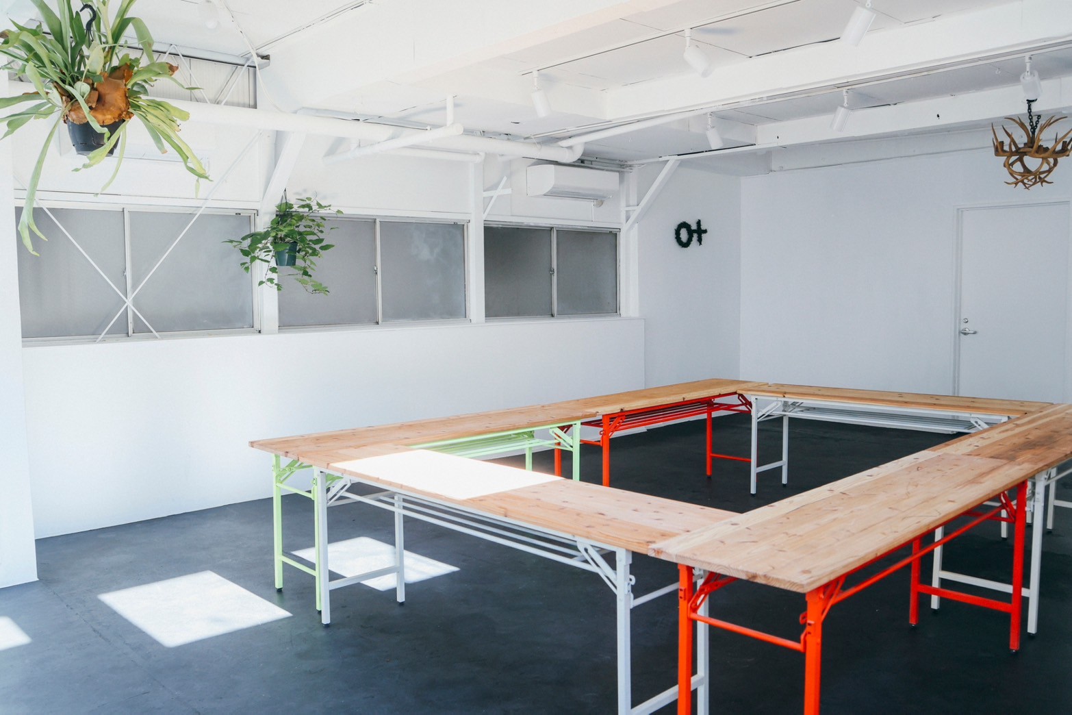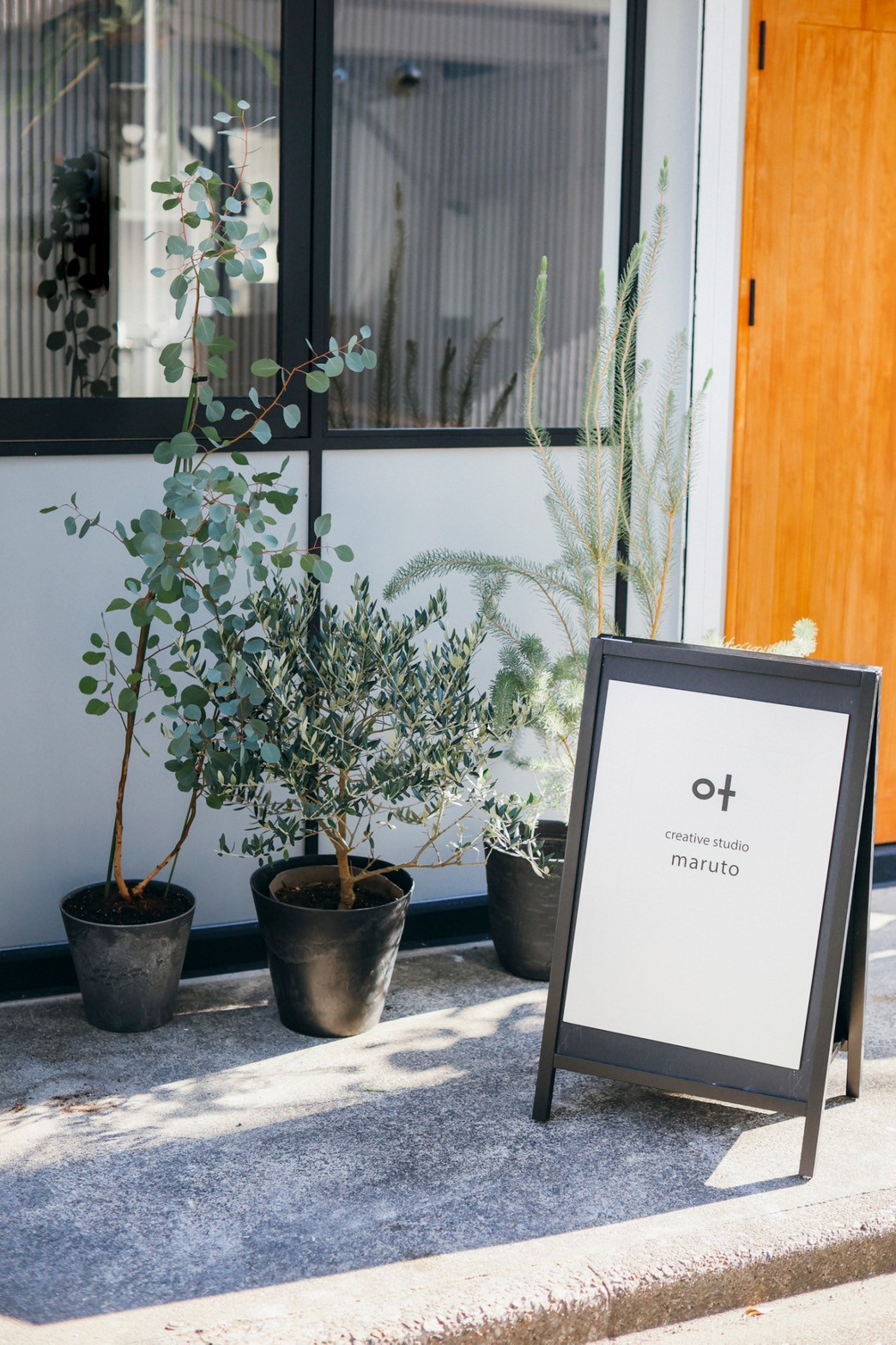 「creative studio maruto」の内装工事では、開放感あふれる白を基調とした空間に、木と植物の温かみを調和させ、
