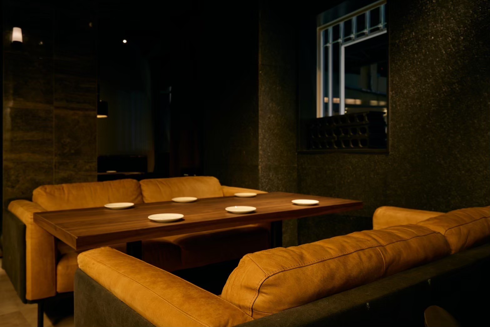 黒を基調とした落ち着いた空間に、温もりある木材や柔らかな照明を組み合わせ、非日常のひとときを演出します。