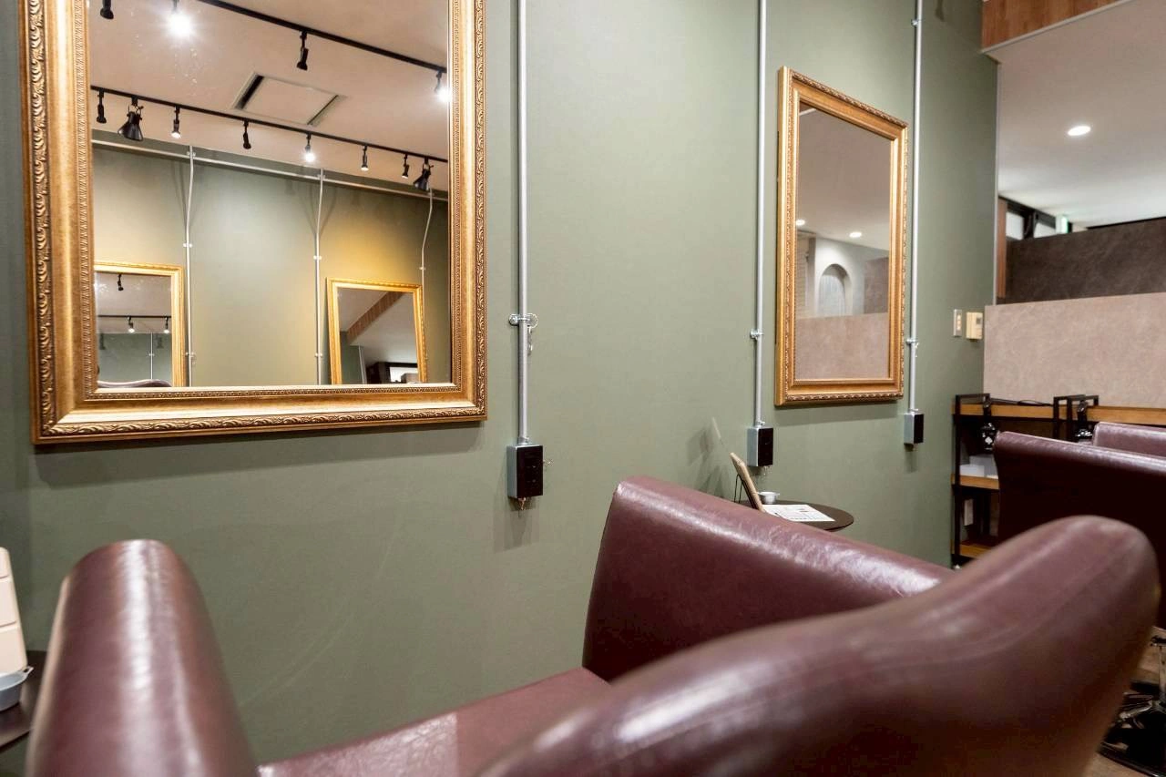・木製カウンター×無垢調天板、額縁ミラーで上質かつクラシックな雰囲気に。
