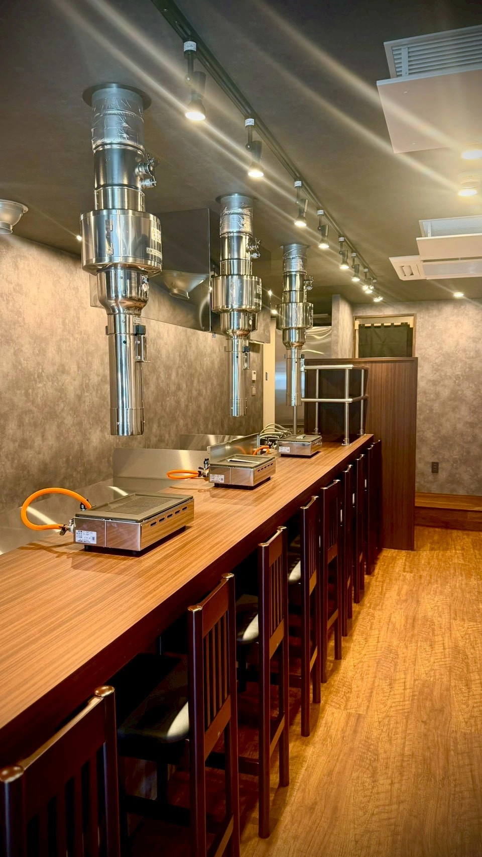 無機質なダクトフードがアクセントとなる落ち着いた焼肉店。
