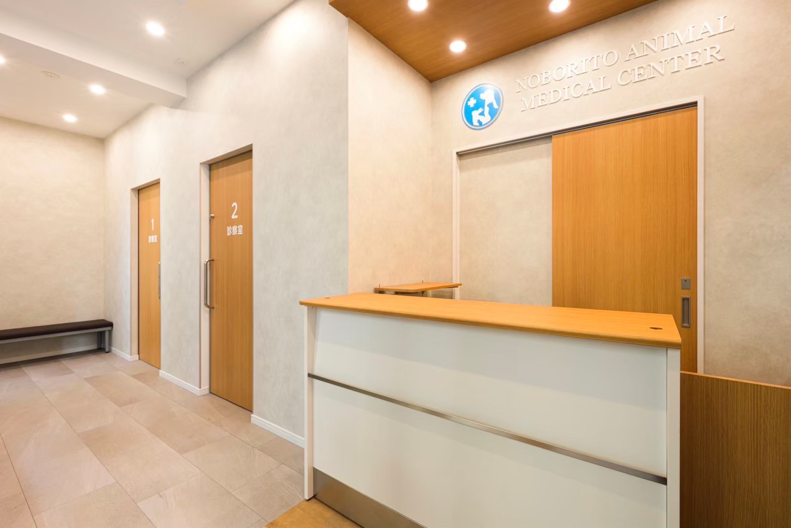 ホワイトを基調に、木目のやさしさを取り入れることで、動物にも飼い主にも安心感を与えるデザインに仕上げています。