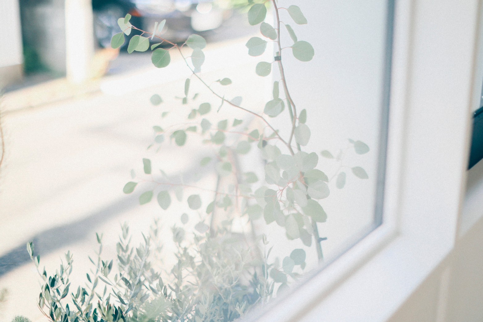 観葉植物を吊るし、彩りと癒しを添えるとともに、自然光が映えるようレイアウトを設計