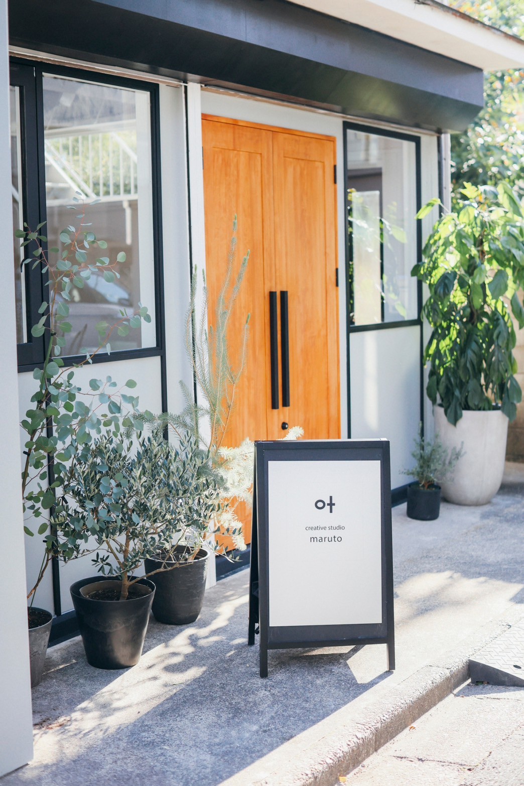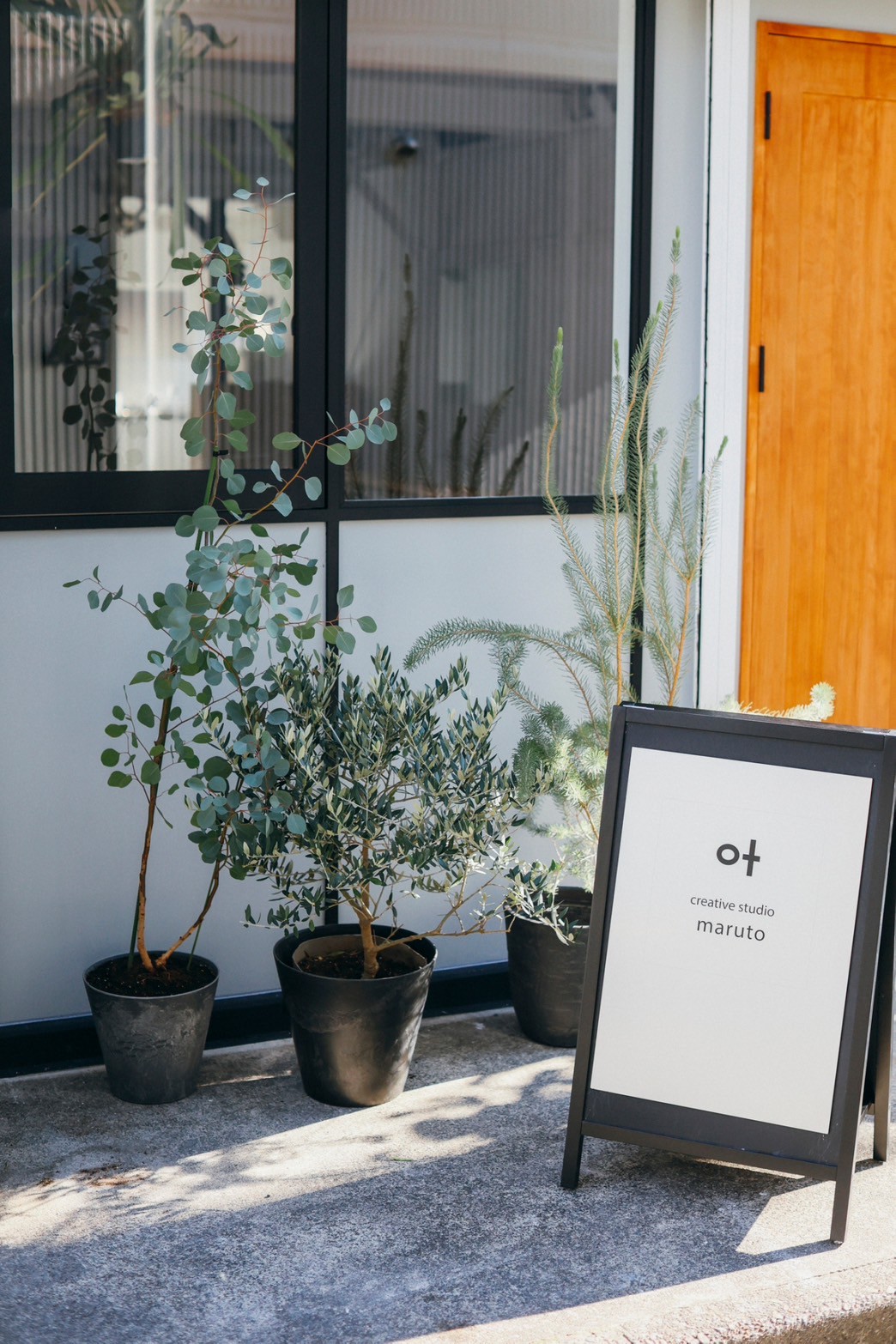 「creative studio maruto」の内装工事では、開放感あふれる白を基調とした空間に、木と植物の温かみを調和させ、