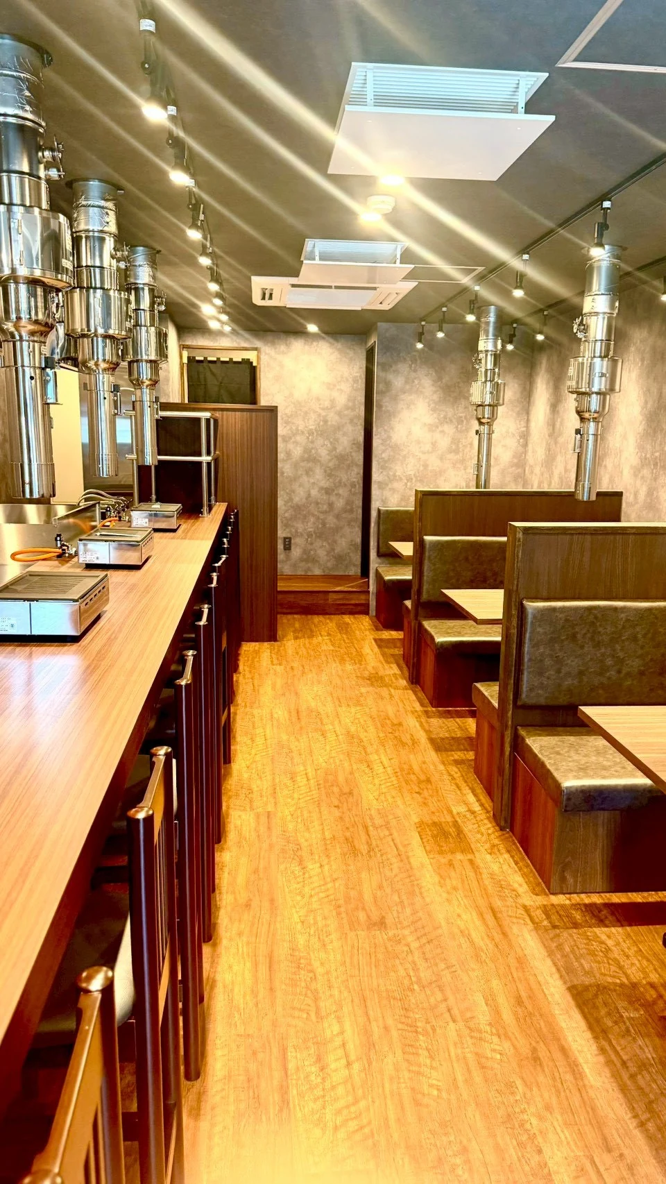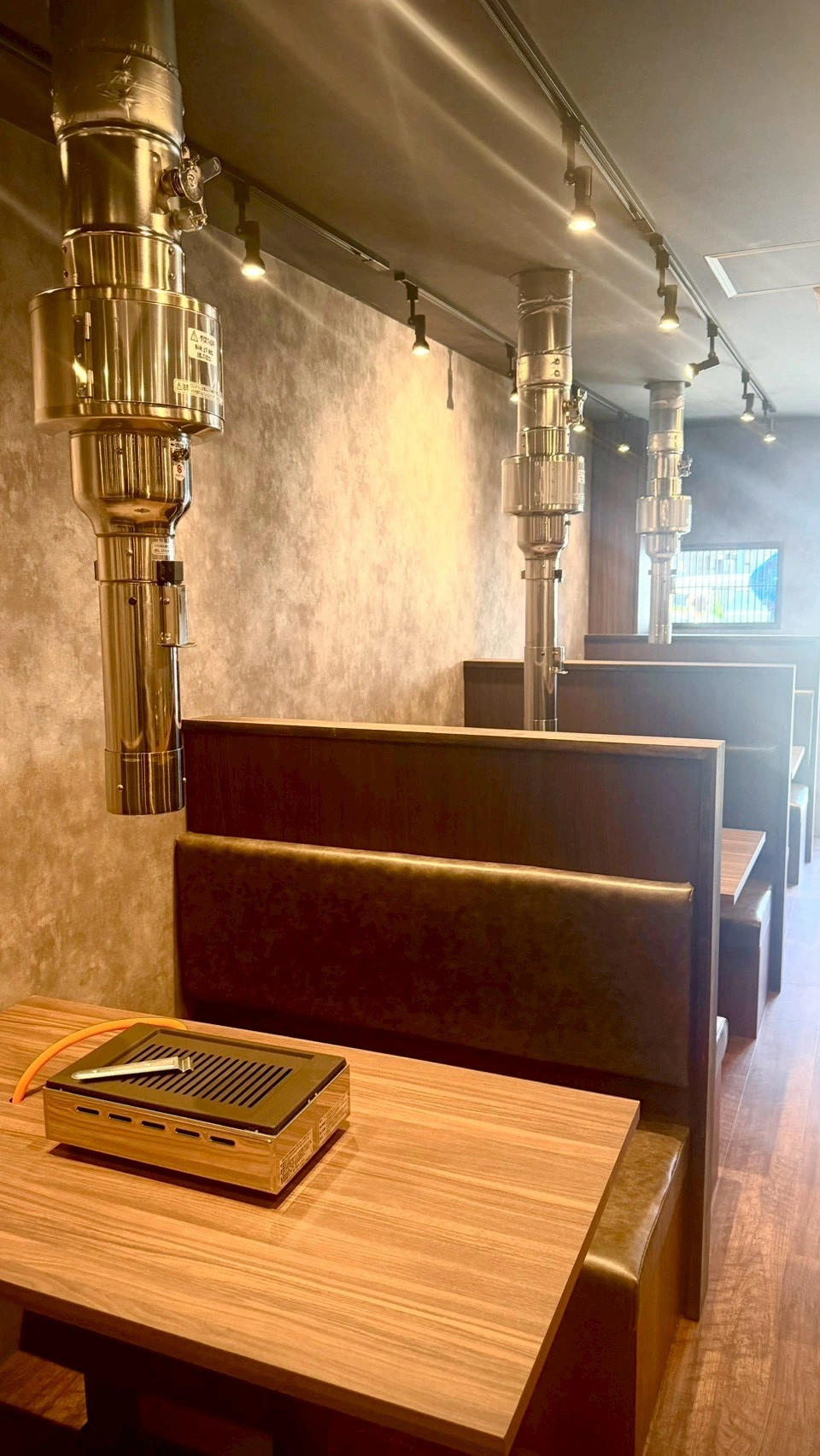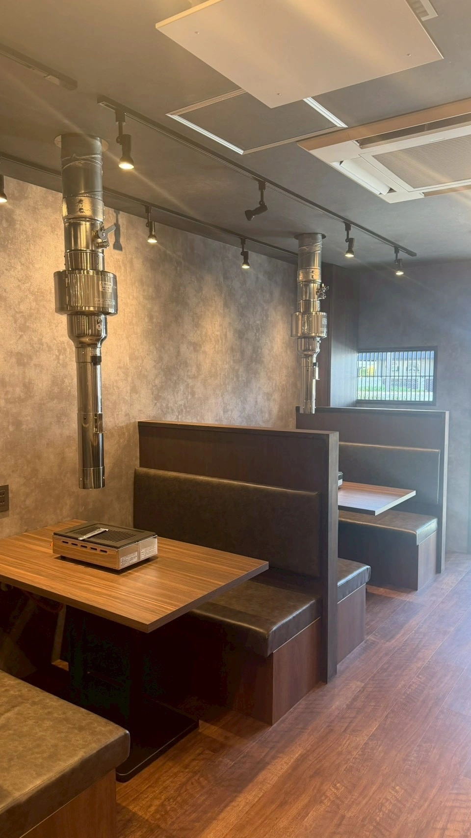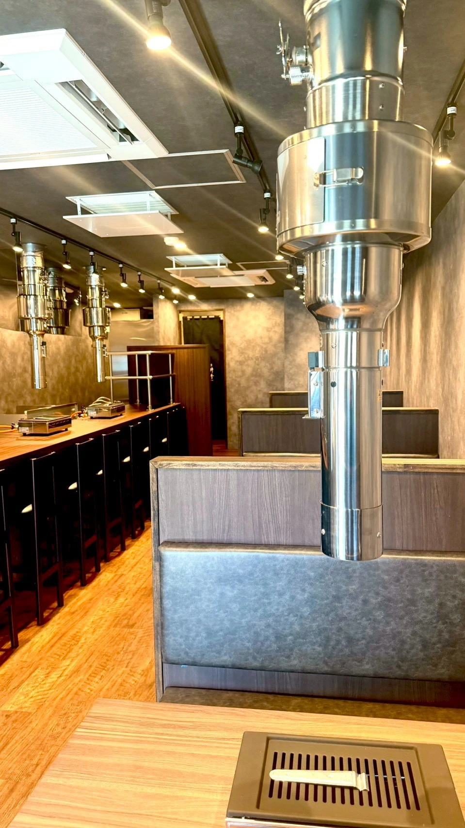 無機質なダクトフードがアクセントとなる落ち着いた焼肉店。