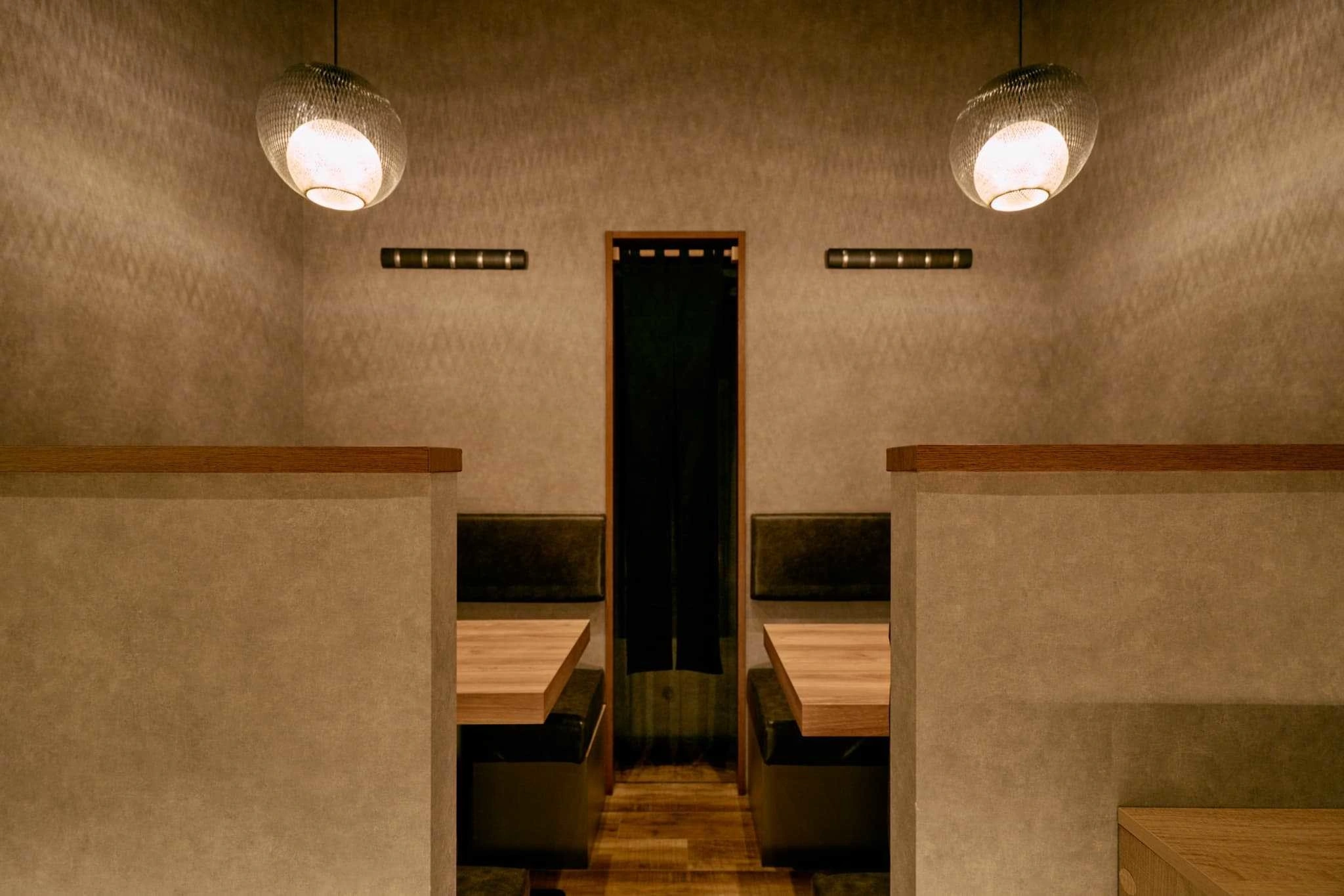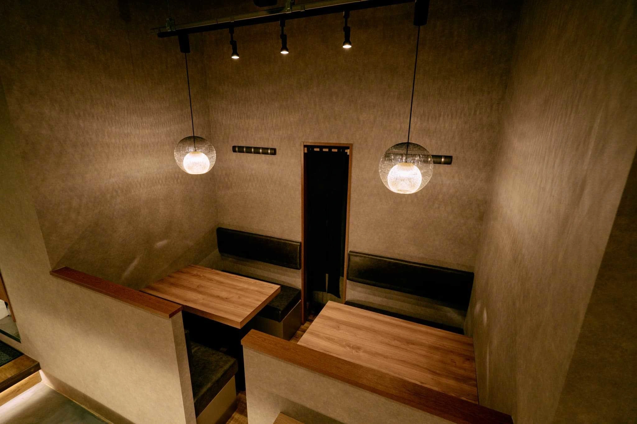 ・行灯ペンダントとスポット照明で、料理が引き立つ明暗設計。
